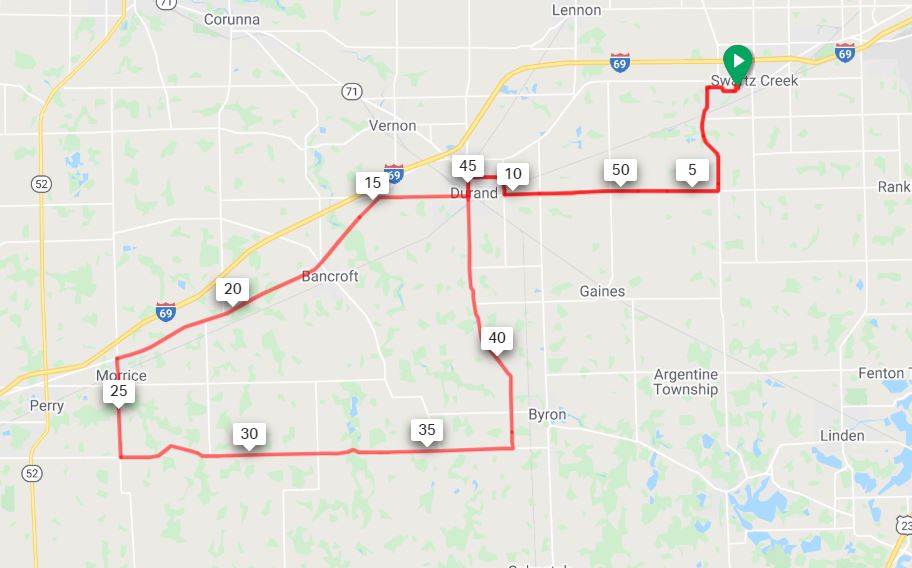Swartz Creek Middle School to Morrice – 57 Miles; A Perfect Loop for a South or Southwest Wind
